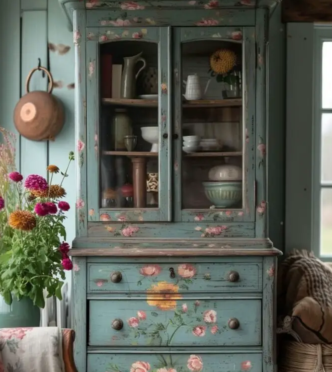 Los muebles desgastados son perfectos para crear un ambiente acogedor y vivido. Una cómoda desgastada, un armario con pintura descascarada o una mesa rústica desgastada por el tiempo pueden convertirse en la pieza central de tu habitación. Las imperfecciones y la pátina de estas piezas añaden profundidad y personalidad. Coloca una mesa auxiliar desgastada en tu sala de estar para darle un toque encantador, o usa una mesa de comedor desgastada para comidas familiares que se vean elegantes y hogareñas. No tengas miedo de mezclar y combinar diferentes estilos y épocas: este enfoque ecléctico realza la autenticidad de tu decoración campestre.